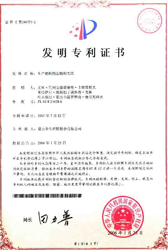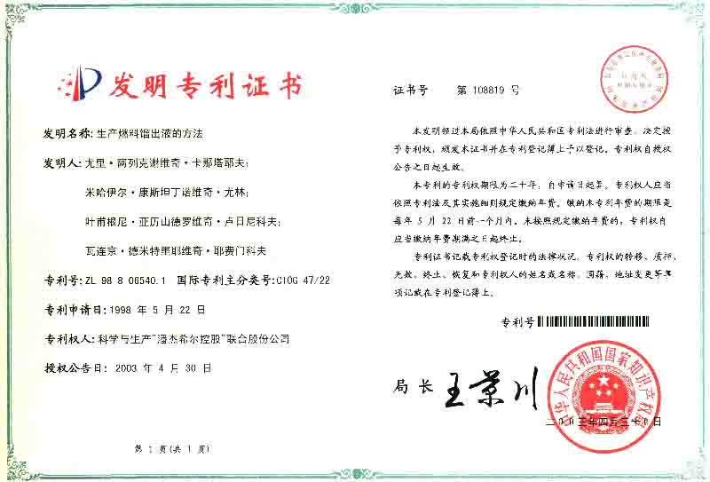 - Представляя Правительству РФ Инновационно-технологический проект «Глубокая переработка тяжелых нефтяных остатков», Компания получила положительное заключение Государственной экспертизы – Республиканского исследовательского научно-консультационного центра экспертизы от 01.07.2002г. № 246.