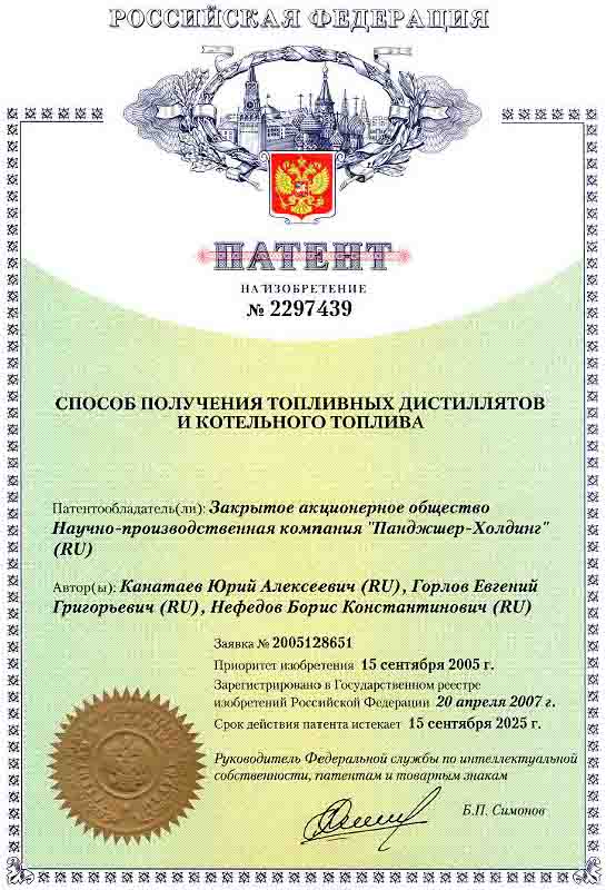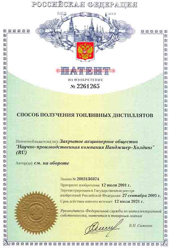 Научно-производственная компания «Панджшер-Холдинг» уже много лет углубленно и всесторонне занимается новыми технологиями в области переработки горючих сланцев и мазута, является собственником исключительных прав (патентов) на изобретения в области переработки тяжелого углеводородного сырья.